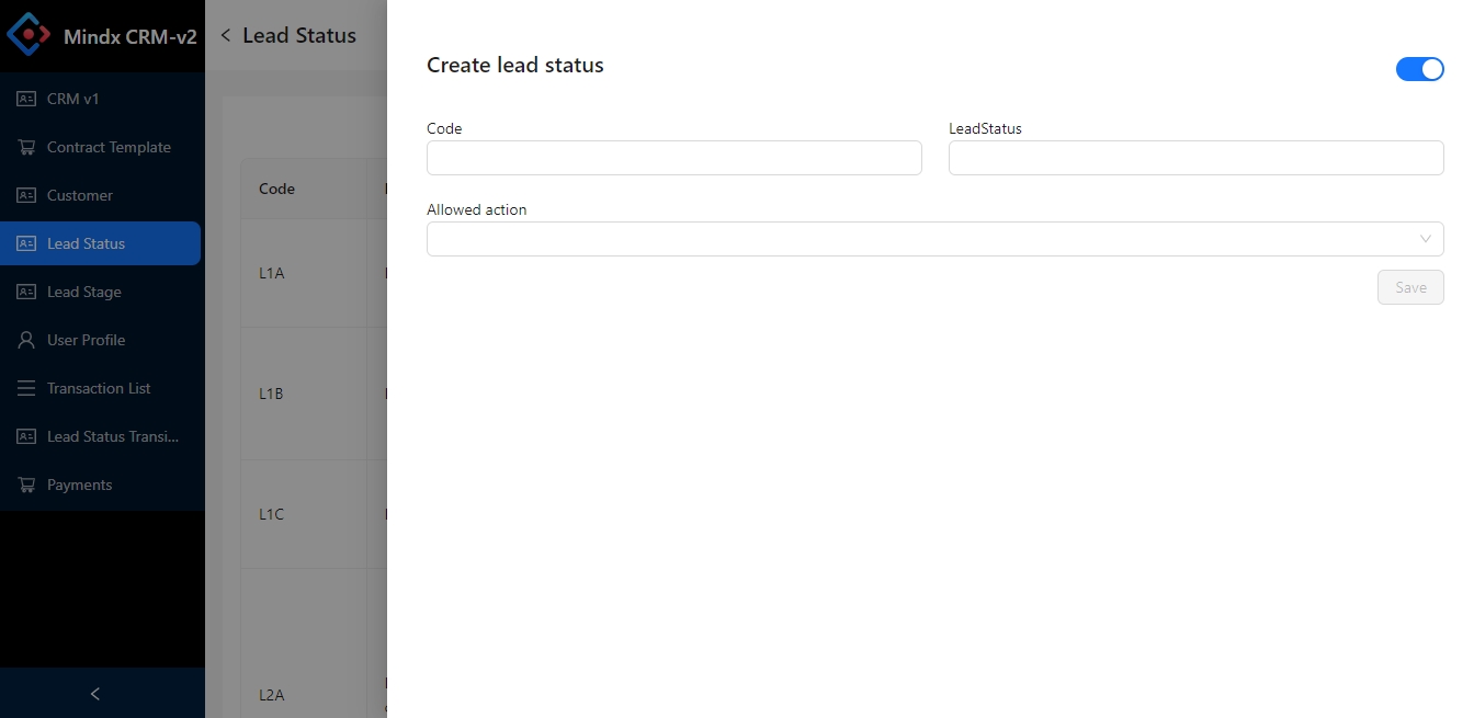 Màn quản lý lead status là nơi admin quản lý lead status trên CRM bao gồm các hành động: Tạo mới, chỉnh sửa, xem lead status