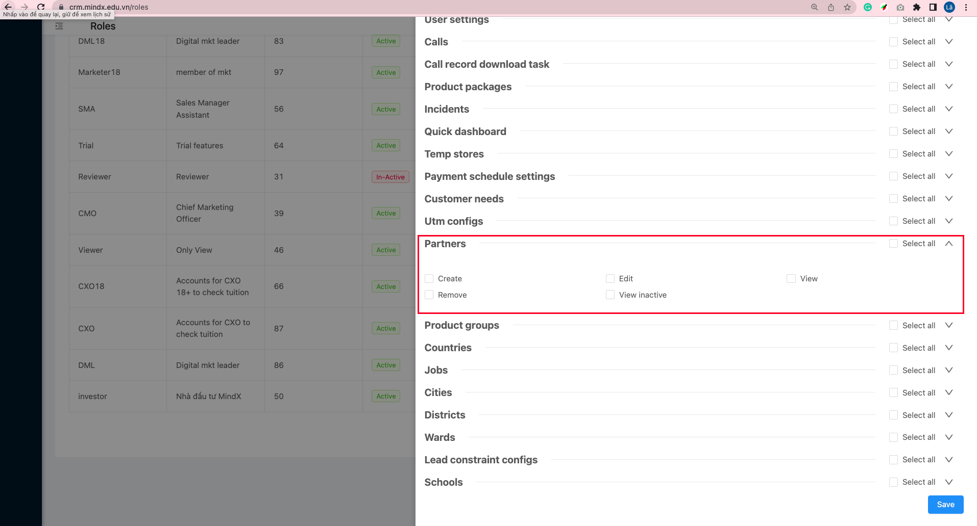 * Chỉnh sửa tên Partner là duy nhất, có ý nghĩa để khi user chọn Partner tại màn lead dễ dàng nhất, không nhầm lẫn.