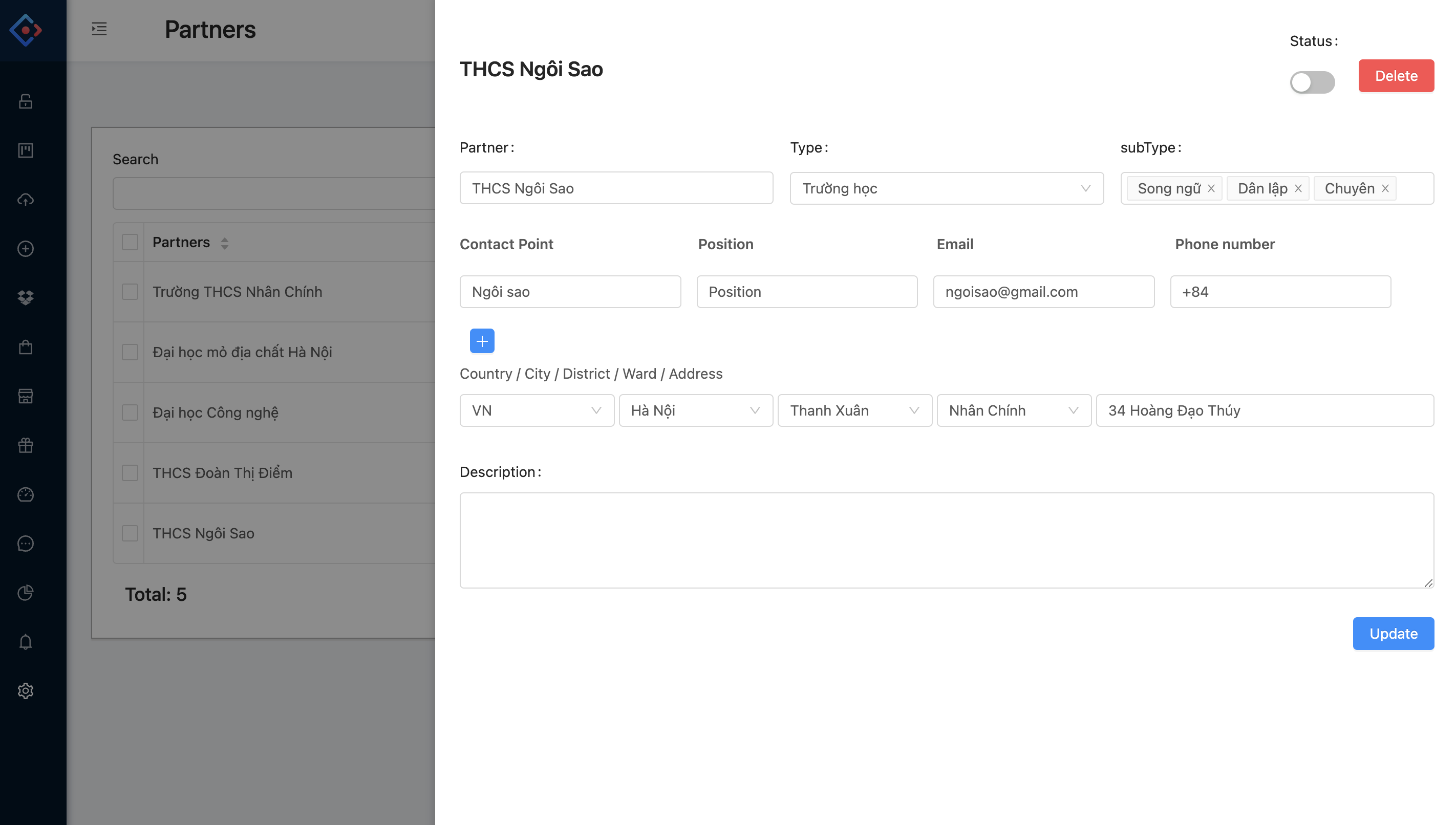 5. **Cách chỉnh sửa/xóa Partner đã có**